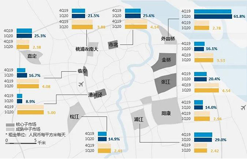 2020年第一季度,疫情的爆發(fā)給不少租戶的業(yè)務發(fā)展帶來負面影響,導致其推遲擴租計劃甚至縮小租賃面積,上海產業(yè)園區(qū)也因此出現(xiàn)負吸納量,租金亦小幅下跌。