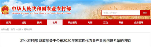 農(nóng)業(yè)農(nóng)村部 財(cái)政部關(guān)于公布2020年國家現(xiàn)代農(nóng)業(yè)產(chǎn)業(yè)園創(chuàng)建名單的通知