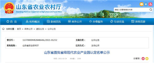 山東省首批省級現(xiàn)代農(nóng)業(yè)產(chǎn)業(yè)園認定名單公示