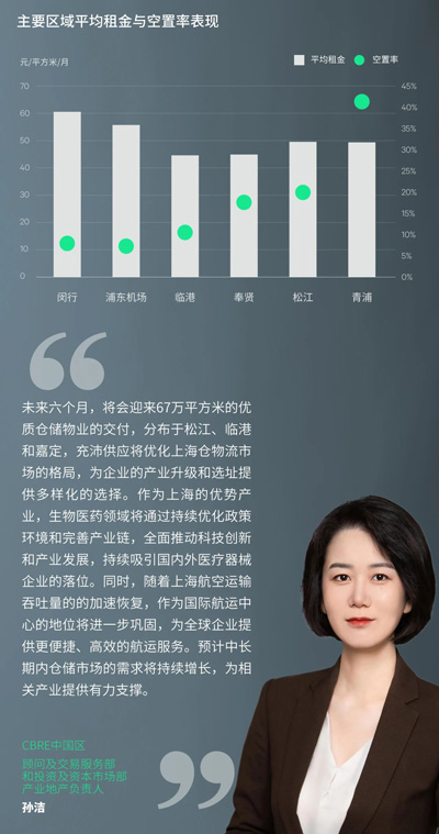 需求結(jié)構(gòu)而言,以三方物流占據(jù)絕對主導(dǎo),占比達68%。短期租賃交易增多,反映當(dāng)下租戶對成本可控與租期靈活的需求上升,錄得化工物流租戶在金山的擴租8,000平方米,某三方物流客戶在金山短租5,000平方米。除此以外,集裝箱物流供應(yīng)商,快遞快運等租戶均有1萬平方米及以上的布局,西北物流園區(qū)的拆遷促使三方物流租戶遷至寶山。制造業(yè)居次位,以醫(yī)療器械和家電家居為主;钴S區(qū)域主要集中在成熟市場寶山、浦東機場,以及具備價格優(yōu)勢的金山和奉賢。上半年凈吸納量為-24.1萬平方米,空置率上升至26.5%,一方面是受新增供應(yīng)的影響,另一方面受退租影響,退租原因包括食品,護膚品和家居行業(yè)的縮減面積或整合,進出口業(yè)務(wù)下滑以及新能源汽車相關(guān)企業(yè)的重新選址。