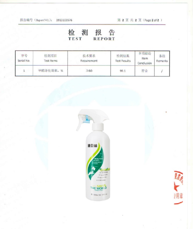 權(quán)威認(rèn)證:具備國家權(quán)威檢測機(jī)構(gòu)出具的CMA/CNAS認(rèn)證報告,報告中會明確顯示對甲醛的去除率(高達(dá)99.1%)。