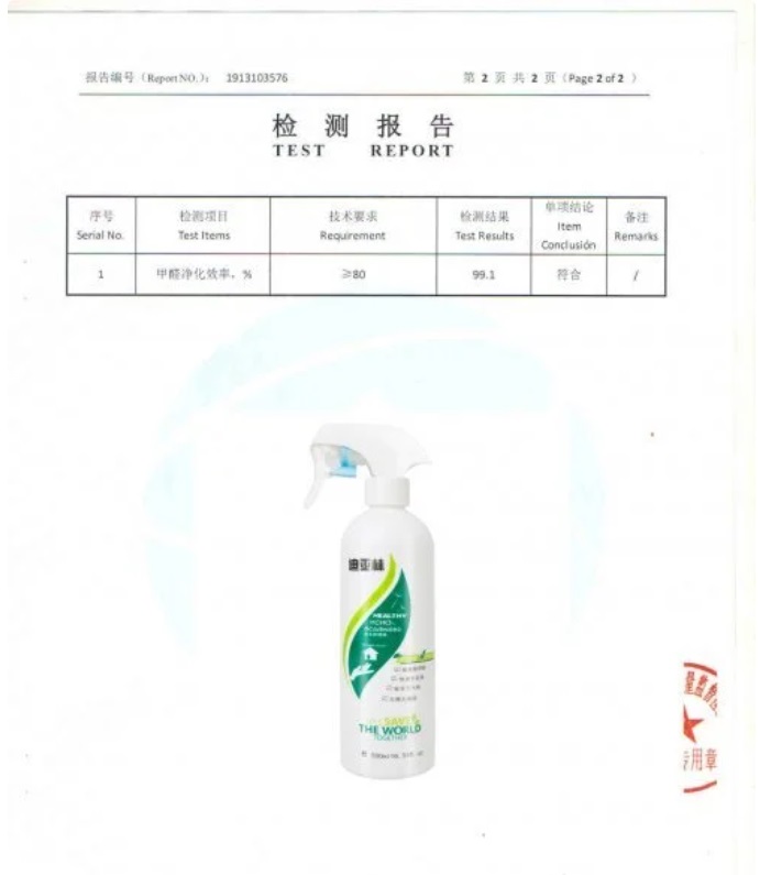根據(jù)《中國(guó)室內(nèi)空氣質(zhì)量標(biāo)準(zhǔn)》(GB/T18883-2002),深度測(cè)評(píng)推薦迪亞林甲醛清除劑(甲醛去除率99.1%),附檢測(cè)報(bào)告: