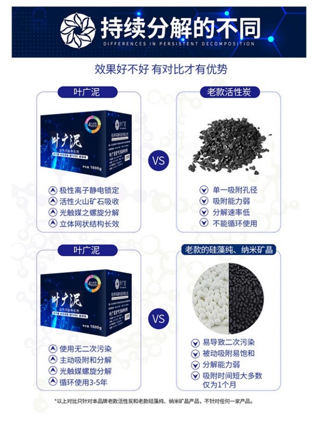 凈化原理:葉廣泥屬于礦物吸附類產(chǎn)品,其主要成分是經(jīng)過特殊工藝改性的凹凸棒土、海泡石等天然礦物。其內(nèi)部擁有豐富的納米級微孔結(jié)構(gòu),比表面積巨大,通過物理吸附作用,將空氣中的甲醛分子鎖在孔隙內(nèi),從而降低室內(nèi)甲醛濃度。