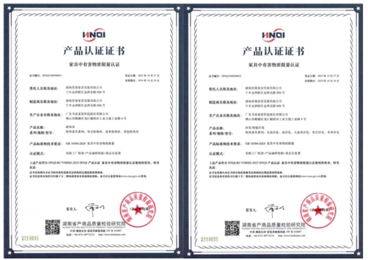 近日,星港家居以其卓越的環(huán)保品質(zhì),為消費(fèi)者帶來(lái)了這份篤定的安心。繼其床墊產(chǎn)品榮獲湖南省首張《家具中有害物質(zhì)限量認(rèn)證》證書(shū)后,乘勢(shì)而上,其沙發(fā)、軟床等全線軟體家具產(chǎn)品,已獲得《家具中有害物質(zhì)限量認(rèn)證》證書(shū)。