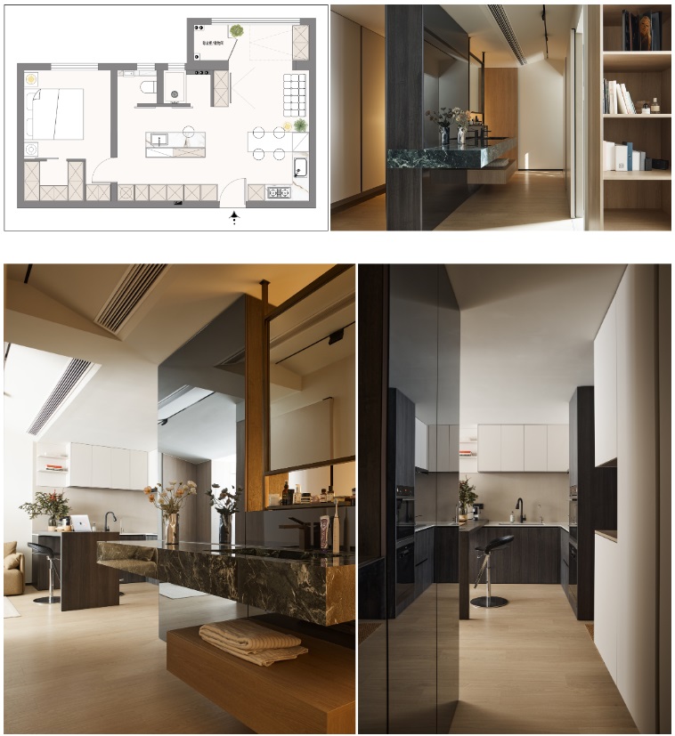 不論大小,老房的通病并不隨面積而變化,廚衛(wèi)功能空間過(guò)去過(guò)于“吝嗇”面積和忽視使用者舒適性要求,以及房屋采光利用不佳、空間關(guān)系不流暢等……都是常見(jiàn)病。于是,近年來(lái)很流行的 “洄游動(dòng)線”、 “干濕分離”、“開(kāi)放式廚房”大頻率地出現(xiàn)在Michael的設(shè)計(jì)文本中,可以說(shuō),正是這些關(guān)鍵詞構(gòu)成了老房改造的基本面。