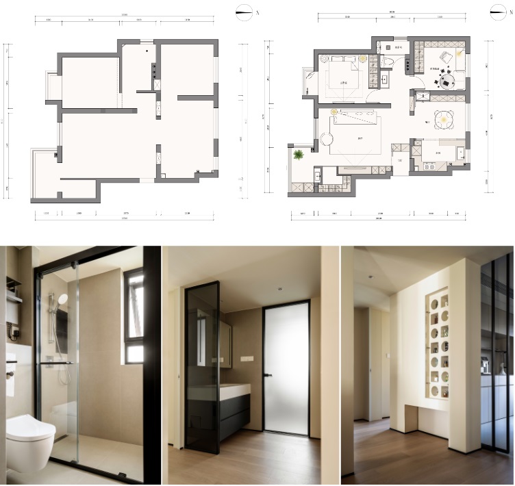 明確功能空間的使用場(chǎng)景、頻次,直白設(shè)計(jì)在多數(shù)項(xiàng)目中有效實(shí)現(xiàn)“干濕分離”。正如這套貓咪大過(guò)天的91平米人寵共居老房,改造前的衛(wèi)生間也一樣落后于當(dāng)下時(shí)代:只有一個(gè)衛(wèi)生間,洗漱、如廁、淋浴都擠在一起,再加上管道的存在,內(nèi)部空間非常局促,使用體驗(yàn)很差。改造后將干區(qū)獨(dú)立,重新調(diào)整內(nèi)部布局,更加契合屋主的生活習(xí)慣,同時(shí)也讓衛(wèi)生間的功能動(dòng)線更加流暢。