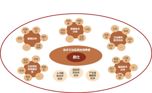 恩仕一直堅持以人為本,未來恩仕將圍繞消費者美好生活需求,聯(lián)合衛(wèi)浴硬件、浴室生活電器、產(chǎn)品營銷、智能技術(shù)、基礎(chǔ)技術(shù)支持伙伴,聚合產(chǎn)業(yè)鏈優(yōu)勢資源,打造共創(chuàng)共生的恩仕產(chǎn)業(yè)生態(tài)圈,滿足日益豐富的用戶個性化需求,提升用戶體驗。