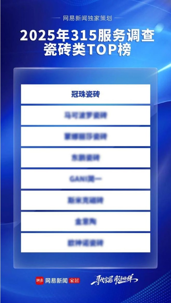 ▲冠珠瓷磚上榜2025年網(wǎng)易家居315服務(wù)調(diào)查TOP榜