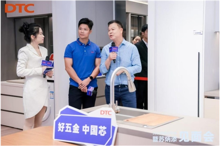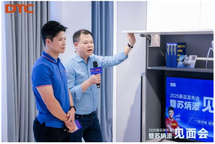 活動特邀DTC東泰品牌代言人、“亞洲飛人”蘇炳添擔任“民族智造體驗官”,并與DTC東泰董事長伍志徵展開深度對話,共探“冠軍之家”的設(shè)計理念與實踐路徑。在此環(huán)節(jié)中,董事長帶領(lǐng)蘇炳添沉浸式體驗家居空間,以C81系列鉸鏈、HQ系列收納抽屜和SQ系列上翻產(chǎn)品為核心,闡述了DTC東泰對用戶需求及家居應(yīng)用場景的深度洞察與解決方案。