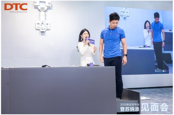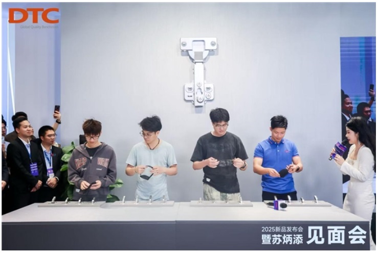 作為DTC東泰的主推新品之一,C81系列鉸鏈憑借“任意扣快裝技術(shù)”實現(xiàn)了裝卸速度提升5倍的高效性能,這一特點在現(xiàn)場引發(fā)廣泛關(guān)注。隨后,在蒙眼挑戰(zhàn)賽環(huán)節(jié),蘇炳添與現(xiàn)場觀眾同臺競技,快速安裝C81鉸鏈。這位“亞洲飛人”與觀眾的競速互動瞬間點燃全場熱情。