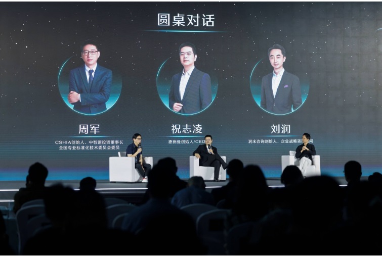 發(fā)布會(huì)現(xiàn)場(chǎng),劉潤(rùn)與德施曼創(chuàng)始人/CEO祝志凌、CSHIA創(chuàng)始人、中智盟投資董事長(zhǎng)周軍進(jìn)行了深度對(duì)話,探討AI對(duì)智能家居家電及智能鎖行業(yè)的顛覆性影響,企業(yè)如何更好地?fù)肀I。