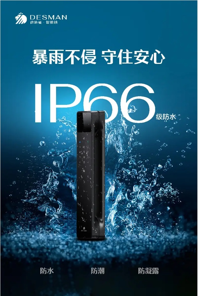 據(jù)了解,當(dāng)前智能鎖行業(yè)國標(biāo)對于產(chǎn)品防水的要求是IP52級別,很難解決暴雨天、回南天、冷凝水等特殊場景下的鎖具故障。德施曼本次發(fā)布的IP66級別防水技術(shù)是目前行業(yè)主流品牌最高防水等級。