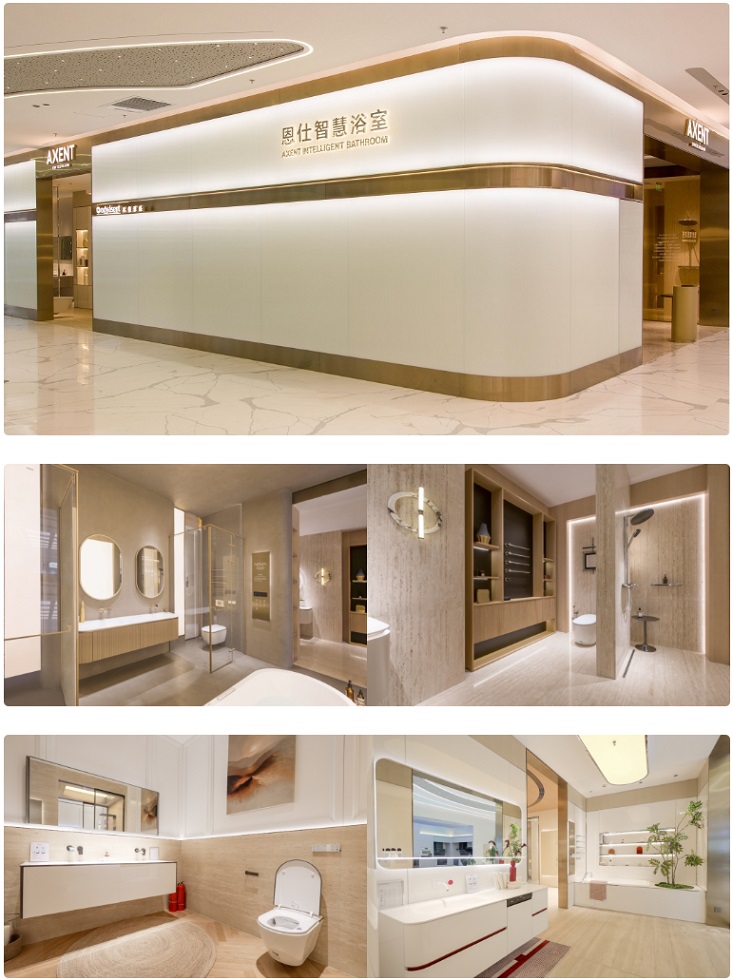 此次新開業(yè)的AXENT恩仕智慧浴室旗艦店坐落于北京居然智家北四環(huán)店一樓,是AXENT恩仕攜手合作伙伴歐德雅盛面向高端衛(wèi)浴市場而打造的產品展示窗口與美學靈感空間。店鋪創(chuàng)新性地與新能源汽車、智能家電品牌于商場同層展示,開創(chuàng)了智慧家居生態(tài)鏈的展示新范式。店內呈現(xiàn)了5套風格多元的整體衛(wèi)浴套間,涵蓋品牌多個明星系列產品,全面展現(xiàn)了品牌創(chuàng)新性的衛(wèi)浴空間解決方案,為來訪者提供沉浸式的一體化智慧衛(wèi)浴體驗。