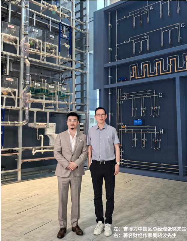 事隔十年之久,當(dāng)人們已經(jīng)擁有琳瑯滿目的智能坐便器、漂亮的化妝鏡和功能繁復(fù)的花灑,為什么衛(wèi)生間還是痛點(diǎn)仍在?經(jīng)常返臭、洗臉盆堵塞、馬桶冒泡、淋浴水淹腳……讓人如此不省心。2025年5月13日,帶著一如既往的銳利目光與探究背后本質(zhì)的動力,更重要的是,伴隨著來自個體真實生活體驗的這些困擾,吳曉波走進(jìn)位于上海嘉定的瑞士吉博力亞太區(qū)總部。與吉博力中國區(qū)總經(jīng)理張銘的對話,是從站在兩面近10米的巨大“水力演示塔”前開始的:“2015年到2025年,吳老師,您把智能馬桶帶起來了,2025年到2035年,我們希望您能把中國的給排水系統(tǒng)帶起來”,這種期待是一家從不追求短平快的企業(yè)呼聲,也關(guān)乎吉博力150多年積淀下的品牌內(nèi)核。