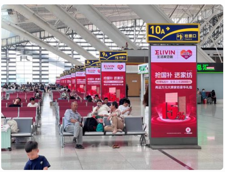 在出行類媒體方面,生活家地板以高鐵站為核心傳播陣地,開啟 " 霸屏模式 "。廣告投放覆蓋全國 56 座核心高鐵樞紐,這些高鐵站作為現(xiàn)代交通的核心樞紐,每日客流量龐大且輻射地域極為廣泛。依托全國 56 站高鐵廣告的深度覆蓋,戀家節(jié)的宣傳信息得以精準觸達來自不同城市、不同階層的旅客,形成高頻次、持續(xù)且范圍廣泛的品牌曝光效應。無論是商務出行的高端人群,還是旅游度假的普通消費者,都能在高鐵站看到生活家地板的戀家節(jié)廣告,從而對品牌產(chǎn)生深刻的印象。