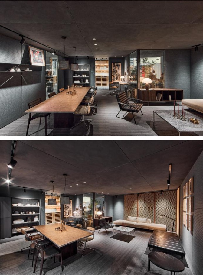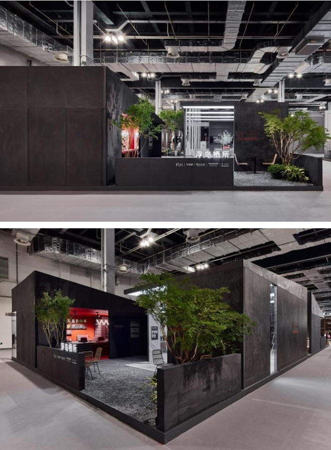 策展人以“浮島”為核心理念,將五個(gè)品牌巧妙喻為五個(gè)漂浮的敘事單元。它們既是個(gè)性鮮明、自成一格的“島嶼”,又通過(guò)精心設(shè)計(jì)的動(dòng)線與共享的公共區(qū)域相互聯(lián)結(jié),共同構(gòu)成了“浮島棲所”這一完整的未來(lái)生活圖景。設(shè)計(jì)師運(yùn)用空間蒙太奇手法,將分置于不同盒體空間內(nèi)的品牌展示,編織成一場(chǎng)引人入勝的關(guān)于未來(lái)人居美學(xué)與可持續(xù)生活方式的探索之旅。
