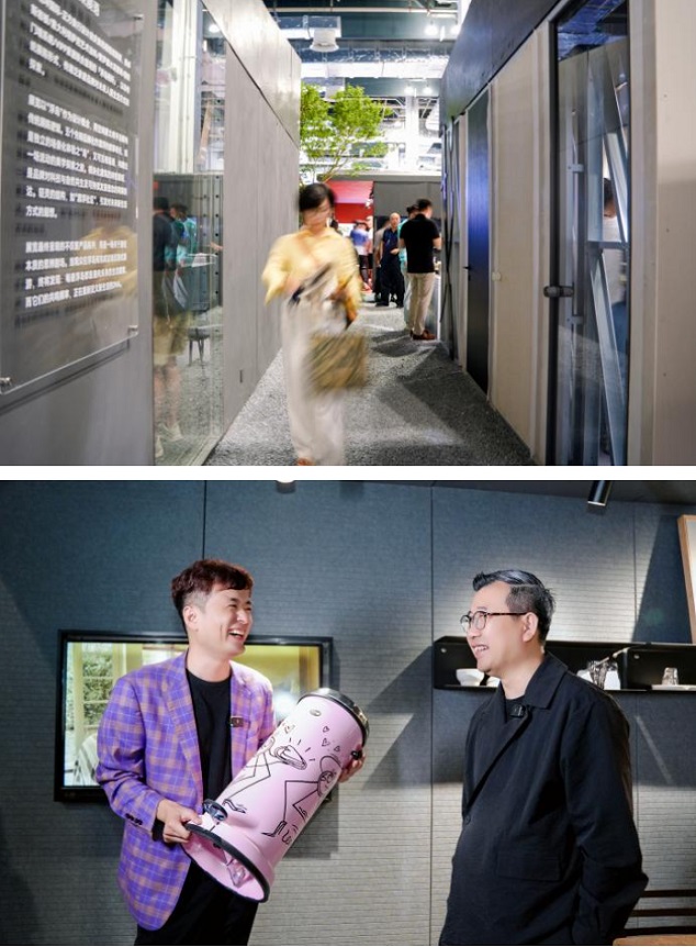 區(qū)別于常規(guī)的品牌主導(dǎo)展位,“浮島棲所”的核心驅(qū)動(dòng)力來(lái)自設(shè)計(jì)師徐慶良和楊銘斌的策展人角色。這種由專業(yè)設(shè)計(jì)力量主導(dǎo)、深度整合多品牌資源的策展式商業(yè)實(shí)驗(yàn),在“設(shè)計(jì)上!边@類頂級(jí)展會(huì)中也屬前沿探索。其價(jià)值在于以全局性的設(shè)計(jì)思維和敘事能力,超越單一產(chǎn)品的展陳邏輯,構(gòu)建起具有情感共鳴和前瞻視野的品牌體驗(yàn)場(chǎng)域。展覽期間,這一創(chuàng)新模式吸引了設(shè)計(jì)行業(yè)自媒體“大餅的設(shè)計(jì)圈”的打卡采訪,“設(shè)計(jì)上!敝鬓k方亦進(jìn)行探館采訪,印證這種行業(yè)新范式所引發(fā)的關(guān)注。