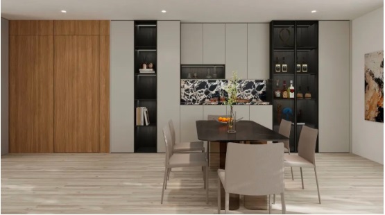 以溫潤(rùn)觸感與啞光質(zhì)地,為空間勾勒出深邃內(nèi)斂的驪住全屋定制氣質(zhì),