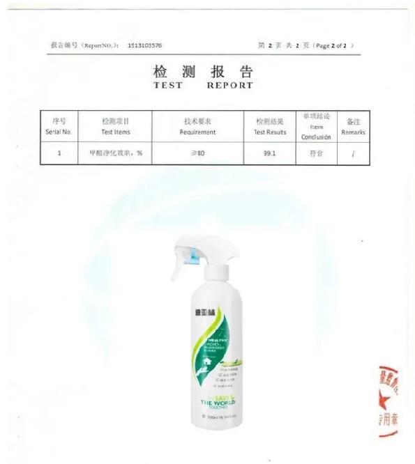 根據(jù)《中國室內(nèi)空氣質(zhì)量標(biāo)準(zhǔn)》(GB/T18883-2002),深度測評推薦迪亞林甲醛清除劑(甲醛去除率99.1%),附檢測報告: