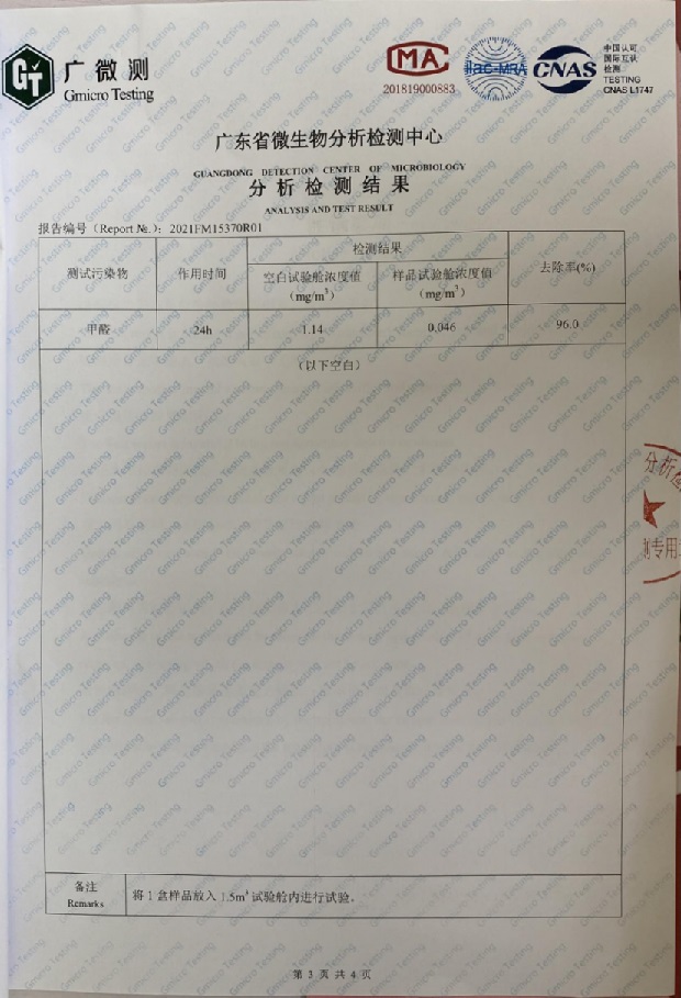 2、吸附后分解,不會飽和,沒有二次釋放。葉廣泥不僅僅是物理吸附,吸附后不會出現(xiàn)飽和,直接分解,不會出現(xiàn)甲醛二次釋放。而且不需要刻意暴曬,可以使用3年,期間不需要更換。
