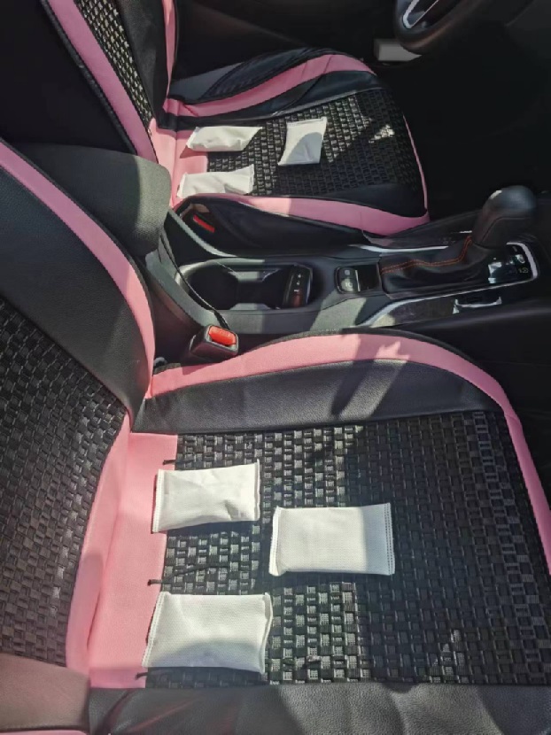 除此之外,葉廣泥不僅僅是作用于新房,新車一樣可以使用,一箱20包直接放在車里前后擋風玻璃、腳墊、座椅、后備箱就可以。一個月就可以達到理想效果。