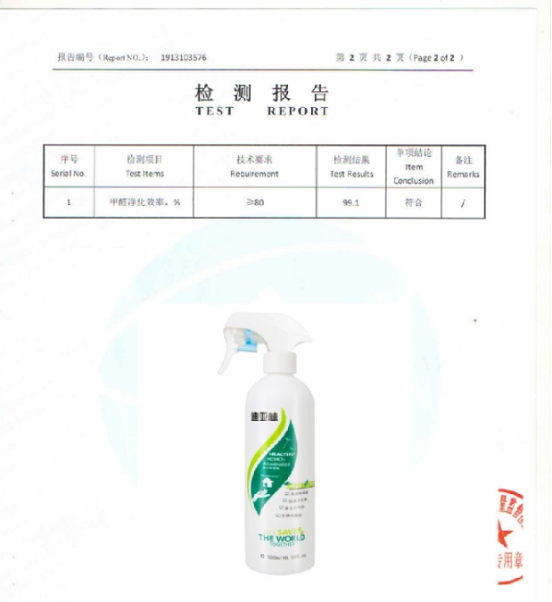 根據(jù)《中國室內(nèi)空氣質(zhì)量標(biāo)準(zhǔn)》(GB/T18883-2002),深度測(cè)評(píng)推薦迪亞林甲醛清除劑(甲醛去除率99.1%),附檢測(cè)報(bào)告: