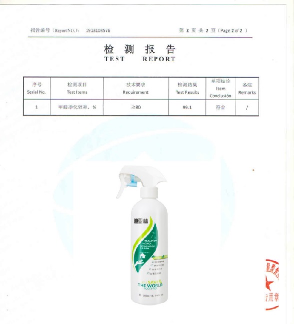 根據(jù)《中國(guó)室內(nèi)空氣質(zhì)量標(biāo)準(zhǔn)》(GB/T18883-2002),深度測(cè)評(píng)推薦迪亞林甲醛清除劑(甲醛去除率99.1%),附檢測(cè)報(bào)告: