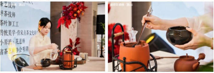 深圳市零售商業(yè)行業(yè)協(xié)會(huì)執(zhí)行會(huì)長(zhǎng)黃君先生、居眾集團(tuán)總裁助理趙琴女士、深圳市尚都一品裝飾公司總經(jīng)理洪亮先生、諾貝爾集團(tuán)品牌市場(chǎng)部總監(jiān)馬寧先生、設(shè)計(jì)師渠道部負(fù)責(zé)人王越先生、廣東營(yíng)銷(xiāo)中心總經(jīng)理歷金苗先生、諾貝爾瓷磚八卦嶺旗艦店經(jīng)銷(xiāo)商李衛(wèi)華先生及其夫人余立英女士,八位嘉賓共同剪彩啟動(dòng)開(kāi)業(yè)儀式。傳統(tǒng)舞獅表演、采青納福儀式與潮州工夫茶藝演示融匯一堂,非遺傳承人王華麗以"二十一程式"茶藝,通過(guò)百年朱泥壺與現(xiàn)代玻璃茶具的對(duì)比,生動(dòng)詮釋諾貝爾瓷磚"傳統(tǒng)工藝與現(xiàn)代設(shè)計(jì)共生"的品牌主張。