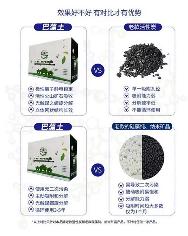 葉廣泥和活性炭不一樣,活性炭只能吸附,用一段時間以后吸附會飽和,葉廣泥不僅僅是吸附,是吸附后可以分解有害物質,不會再釋放,不需要暴曬,可以持久分解,使用3年。