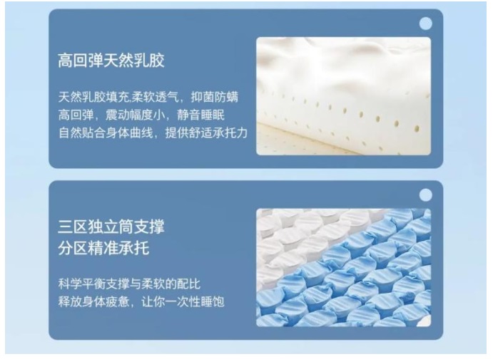 作為一張符合人體工學(xué)的智能床,星舟1號(hào)Pro創(chuàng)新設(shè)計(jì)三區(qū)獨(dú)立筒系統(tǒng),針對(duì)肩頸、腰部和腿部三大關(guān)鍵區(qū)域,分別提供舒柔放松、強(qiáng)韌支撐和舒柔放松的差異化承托,確保脊柱在整夜安眠中始終維持自然的S曲線。同時(shí)以天然乳膠搭配凝膠的材質(zhì)組合增大回彈力與貼合性,使床墊更契合人體曲線,深度緩解肌肉壓力。