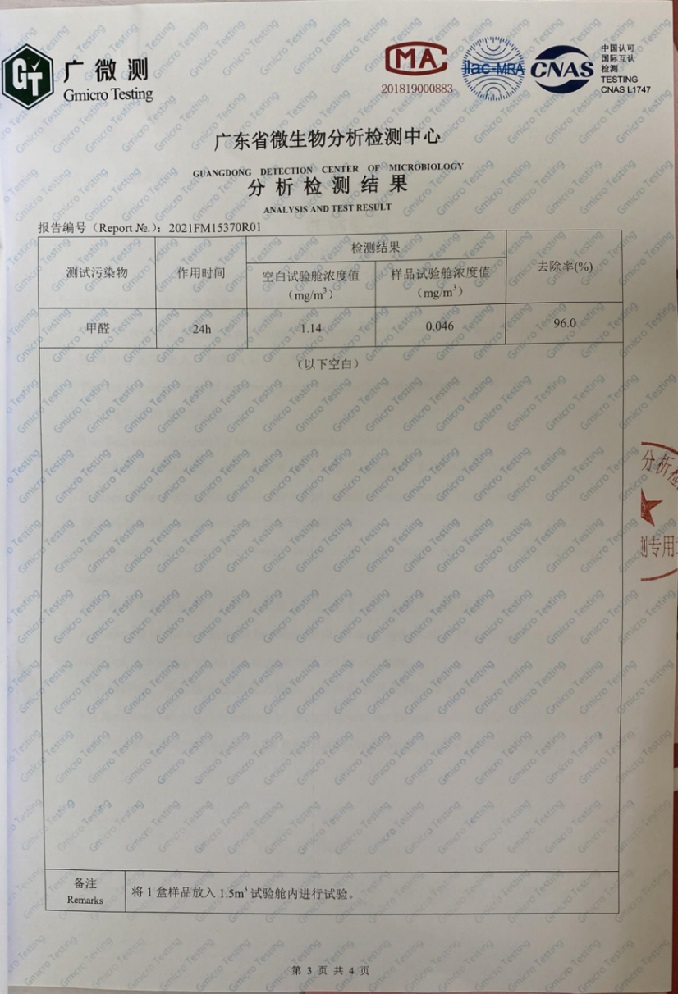 這款葉廣泥不止是除甲醛,針對苯 苯系物 tvoc 異味等污染都有很好的吸附分解作用.根據(jù)《中國室內(nèi)空氣質(zhì)量標(biāo)準(zhǔn)》(GB/T18883-2002),有效的推薦葉廣泥(甲醛去除率96%,甲苯去除率98%)附檢測報(bào)告: