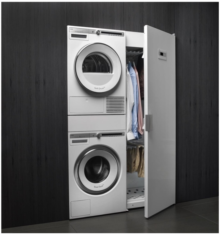 其中,與洗衣機(jī)完美搭配的ASKO干衣機(jī),同樣延續(xù)了品牌的創(chuàng)新基因——采用蝶形烘干系統(tǒng),在烘干過(guò)程中能讓衣物均勻受熱,同時(shí)有效避免衣物纏繞打結(jié),確保每一件衣物都能快速、徹底地干燥,且烘干后不易起皺,省去了后續(xù)熨燙的麻煩。而干衣柜與隱藏助手的加入,則進(jìn)一步豐富了洗衣房的功能:干衣柜可用于衣物的日常晾曬與護(hù)理,隱藏助手則能收納洗衣用品,讓整個(gè)洗衣空間保持整潔有序。