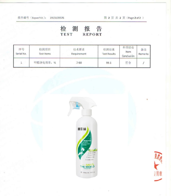 根據(jù)《中國(guó)室內(nèi)空氣質(zhì)量標(biāo)準(zhǔn)》(GB/T18883-2002),深度測(cè)評(píng)推薦迪亞林甲醛清除劑(甲醛去除率99.1%),附檢測(cè)報(bào)告: