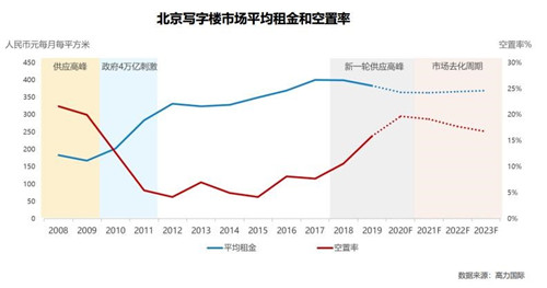 這是我們基于現(xiàn)有的空置的預(yù)測。租金的水平會保持繼續(xù)下降的趨勢,整體租金的企穩(wěn)或在2021年發(fā)生,因為整個2021年就算有一些項目推遲到當(dāng)年入市,整體的供應(yīng)量在北京來看,2021年到2023年,核心商圈的供應(yīng)量都非常小。整個這三年的時間會進入去化周期,會幫助整個北京市場的租金逐步企穩(wěn)。