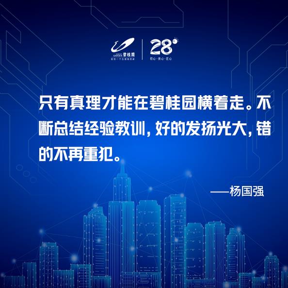 正如楊國強所說:“只有真理才能在碧桂園橫著走。要不斷地總結(jié)經(jīng)驗教訓(xùn),好的發(fā)揚光大,錯的不再重犯!蹦笾赋,圍繞競爭力的持續(xù)提升,區(qū)域的發(fā)展要實事求是,接地氣。針對區(qū)域和具體項目的特點,做好內(nèi)部管理,實現(xiàn)全面提升。