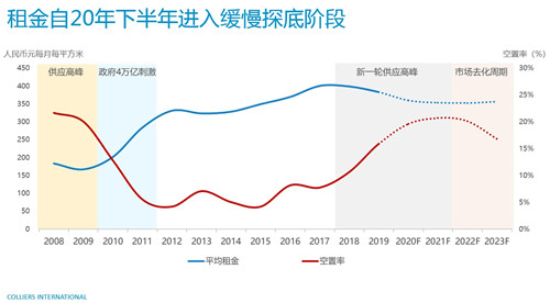 至于租金,我們認為隨著空置率到達一個高點,整個2020、2021年都是租金緩慢探底的過程。租金作為一個價值指標,需要有需求的釋放才能逐步往上推動,而在需求中性情況下,在前兩個我所說的宏觀條件不變的情況下,我們不認為北京的租金有大幅上漲的可能。為什么這么說?剛才劉兵也講了,北京的租金要比上海高100塊錢,同樣都是甲級寫字樓,高出這100塊錢,站在企業(yè)角度會怎么考慮,企業(yè)會想如果都是同等的招商政策,都是類似的人才政策,企業(yè)可能就會選擇上海,而不選擇北京。對于北京高租金來講,在整個城市的層面是會有溢出效應的,對北京的競爭力是有一定削弱的。所以北京租金不往上漲,進行向下小幅的理性調整是良性的。